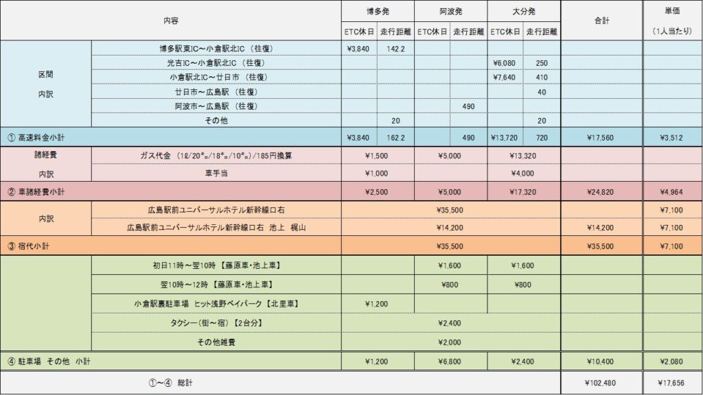 経費内訳_ガソリン代・ETC料金・小倉駐車場